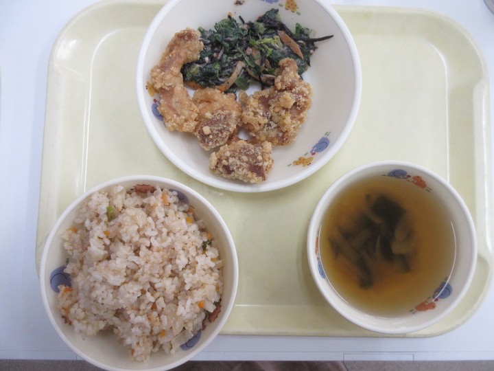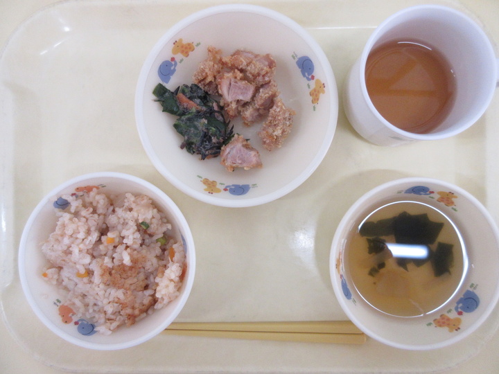 チャーハンとチキンカツ(0.1歳児:鶏煮) 乳児部