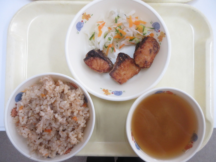 鶏ごぼう飯と魚の竜田揚げ 幼児部