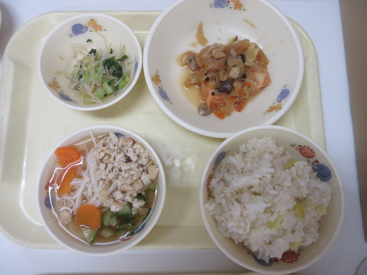園で使用している豆腐は、初月豆腐の国産大豆で作られた無添加豆腐です。大豆からは、豆腐だけでなく納豆や味噌、きな粉、醤油などいろいろな食品が作られます。