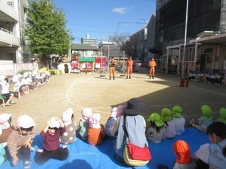 訓練の後に「みんな、上手に避難できましたね!」とほめていただきました。